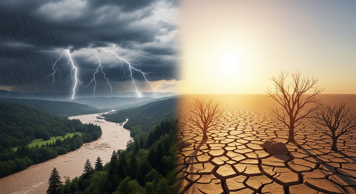 Meteorologové poukazují na to, že tyto extrémy nejsou náhodné. Klimatická změna ovlivňuje globální cirkulaci atmosféry. Vyšší teploty znamenají, že atmosféra dokáže pojmout více vlhkosti (podle Clausiusova-Clapeyronova vztahu), což vede k intenzivnějším srážkám tam, kde prší. Zároveň se však dochází k častějšímu "blokování" atmosférických systémů. To znamená, že počasí se "zasekne" v jedné fázi – buď dlouhodobě prší, nebo dlouhodobě sucho.